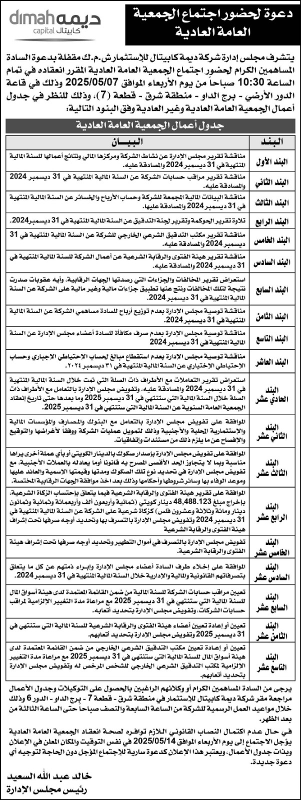 Invitation to attend the Ordinary General Assembly Meeting - 07/05/2025